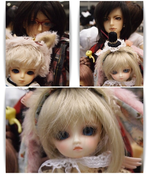 | どどん、とうちの子。幼リン連れて行きました。 新しいウィッグはお団子頭〜♪ どう頑張っても眉前になる。しかも頭デカイこの子にはかな〜りキツイ;; 頑張って被せたけど、前髪斜めってるょという突っ込みはナシで… |